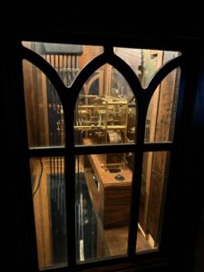 Then I decided to add some LED strip inside and remove the inefficient and hot incandescent lamp. I decided on 24V white LED. I got a Matter controller and wired it to the new strips. I put one strip under the movement to light the cabinet, one in the arch of the face to illuminate that, and one inside the upper cavity to light the movement and chime bars.